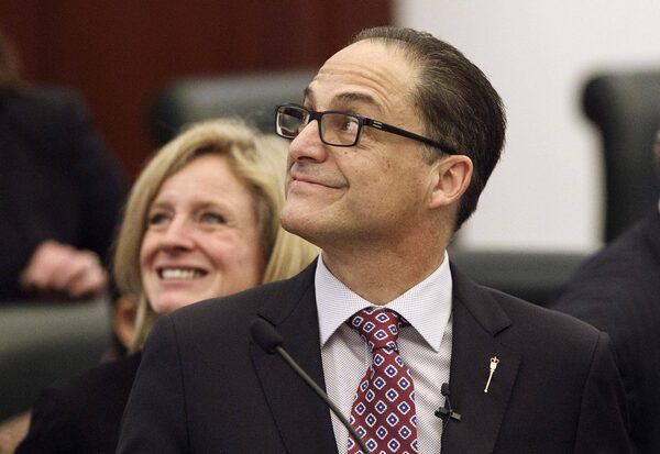 Alberta Finance Minister Joe Ceci and Alberta Premier Rachel Notley at the legislature in Edmonton on March 16, 2017.JASON FRANSON/The Canadian Press