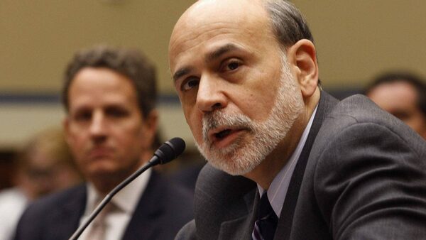 U.S. Secretary of the Treasury Tim Geithner, left, listens to Federal Reserve Board Chairman Ben Bernanke during testimony before the House Committee on Oversight and Government Reform in Washington March 21, 2012.GARY CAMERON