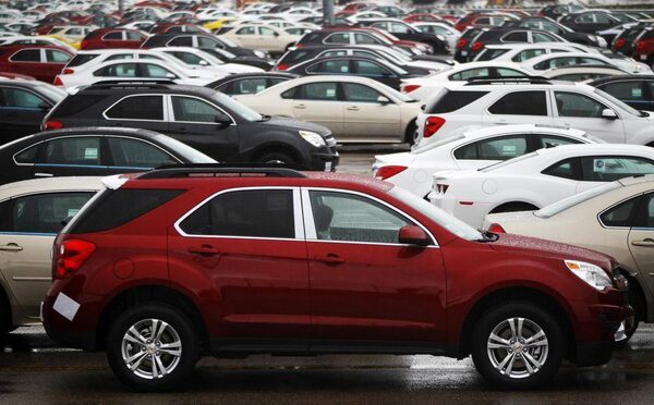 Newly built cars sit in a shipping lot near General Motors assembly plant in Oshawa, June 1, 2012.Mark Blinch/Reuters