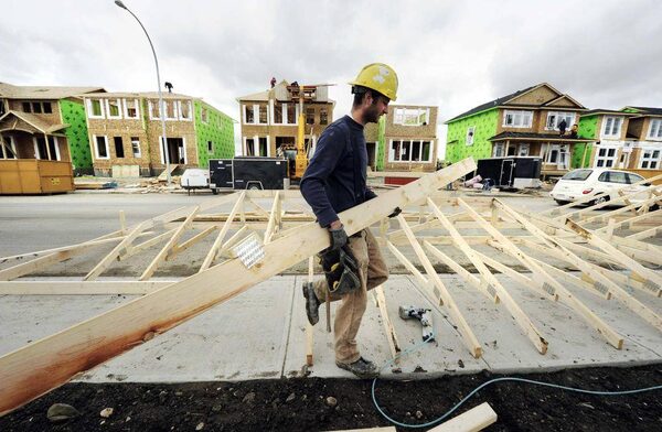 A construction worker works on building new homes in Calgary, in this file photo.TODD KOROL/Reuters