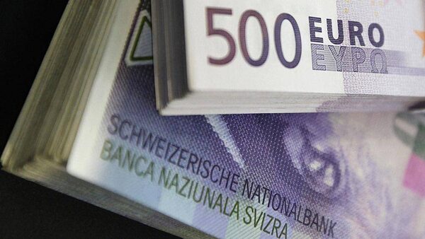 Stacks of Swiss franc and Euro banknotes are displayed in a bank in Bern August 15, 2011.PASCAL LAUENER/Reuters