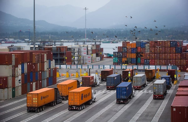 Trucks wait to enter the DP World Container Terminal at Port Metro Vancouver, in Vancouver, B.C.DARRYL DYCK/The Globe and Mail
