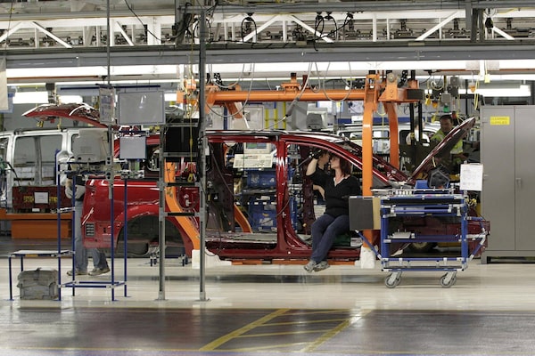 Fiat-Chrysler assembly line at the Windsor Assembly Plant, in Windsor, Ontario. The erosion in the global competitiveness of Canadian manufacturing is perhaps most apparent in Canada’s auto sector.Jeff Kowalsky/Bloomberg