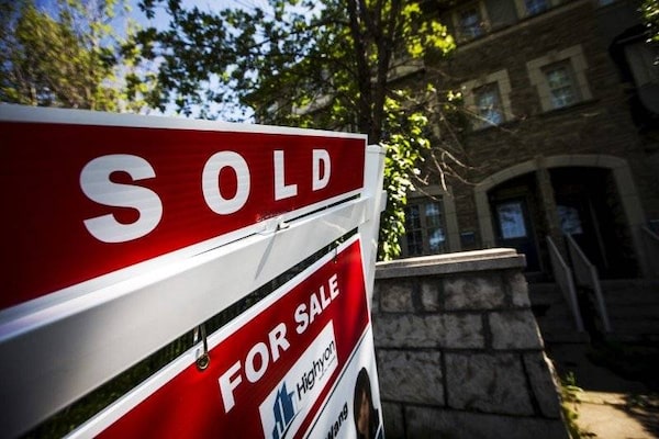 A "For Sale" sign stands in front of a home that has been sold in Toronto, Canada, June 29, 2015. REUTERS/Mark BlinchMark Blinch/Reuters