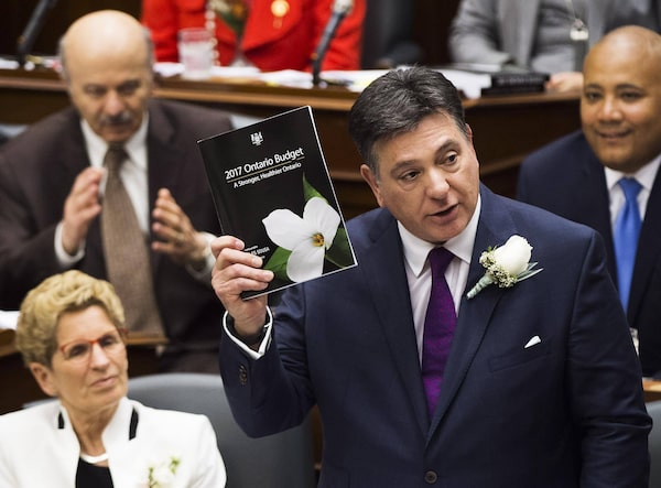 Ontario Finance Minister Charles Sousa, right, delivers the 2017 Ontario budget next to Premier Kathleen Wynne at Queen's Park in Toronto on Thursday April 27, 2017.Nathan Denette/The Canadian Press