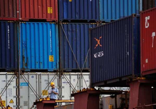 A worker checks a list on a cargo ship loaded with containers at the Tianjin port in China.Andy Wong/The Associated Press