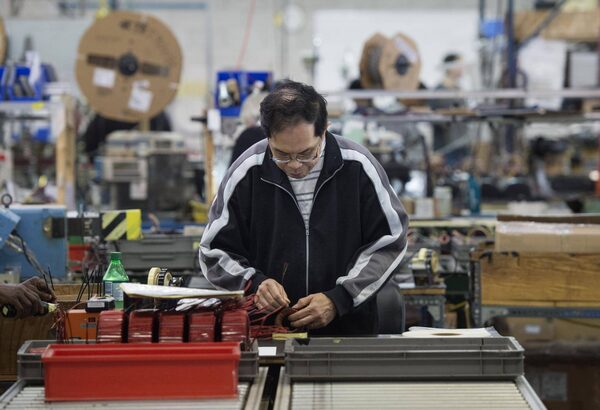 An employee on the factory floor at Plitron Manufacturing in Toronto. Statistics Canada said Friday that Canadian factory sales fell 3.3 per cent in February.Darren Calabrese/The Globe and Mail