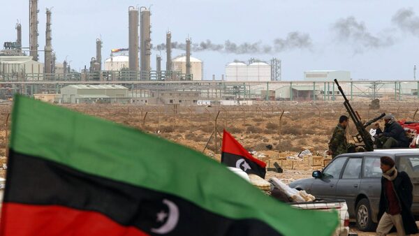 The Kingdom of Libya flag flies in front of a refinery in Ras Lanuf in this March 8, 2011, file photo. A new study says the recent uprising cost the country about 28 per cent of its gross domestic product.GORAN TOMASEVIC