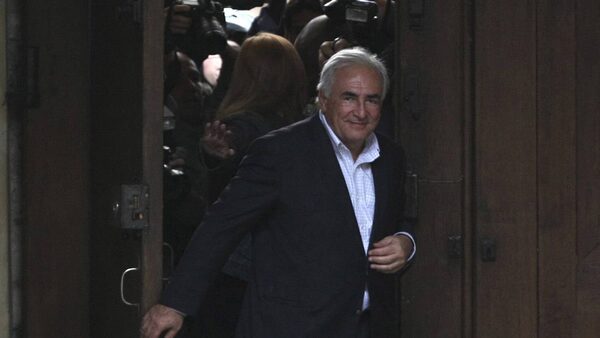 Dominique Strauss-Kahn, former head of the International Monetary Fund, arrives in the courtyard of his home in Paris on Sunday, Sept. 4.Claude Paris