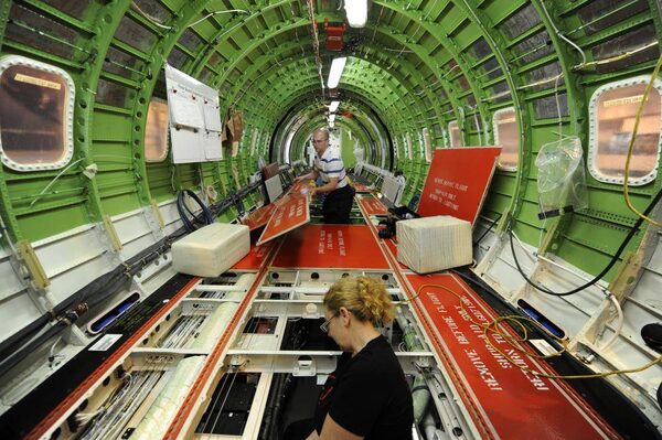 Workers lay cables and wiring in a Global Express jet being manufactured at Bombardier Inc.'s Downsview assembly plant on May 29 2012.Fred Lum/The Globe and Mail