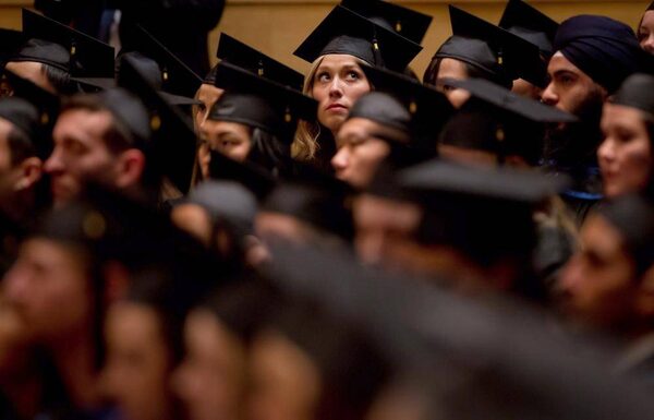 A University of British Columbia student looks up to the crowd while waiting to receive her diploma during a graduation ceremony at the university in Vancouver, B.C., on Thursday May 24, 2012.DARRYL DYCK/The Canadian Press