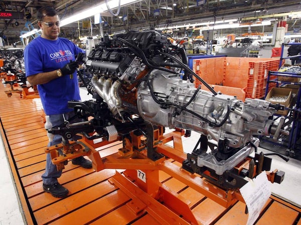 A Chrysler employee works on the assembly line at a plant in Brampton, Ont., in this photo from 2011. Canadian exports of auto products are now 12.9 per cent, compared to 24.2 per cent in 1988.MIKE CASSESE/Reuters