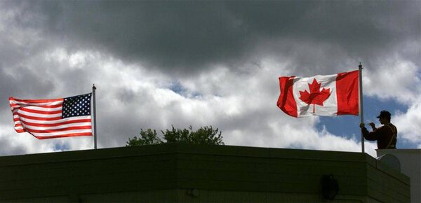 U.S. and Canadian flags at the Reversing Falls Information Centre in Saint John.DAVID NICKERSON/The Canadian Press