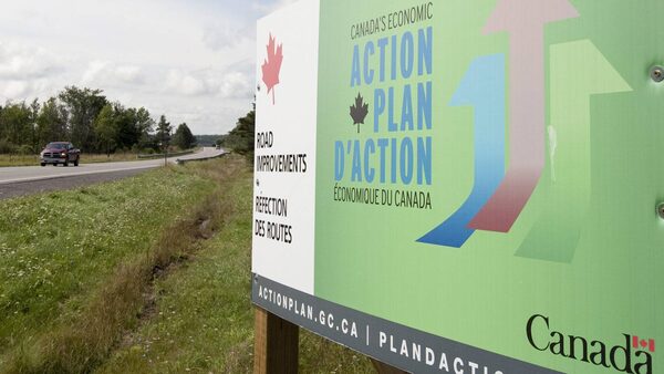 A highway sign advertising the Tory stimulus program, dubbed the Economic Action Plan.Adrian Wyld