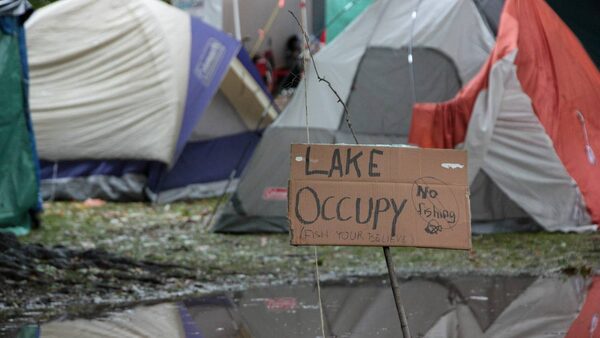 He won't say what personal reasons brought him here, but says the financial system is broken. He implies this little tent city is utopia, where responsibility is shared by an army of volunteers and everyone is (in his words) equal. "Many here have told me this is the happiest they've felt in their lives," he says.