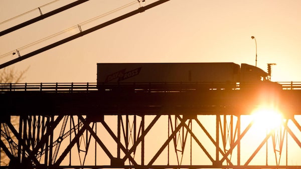 A truck crosses the Ambassador Bridge to Detroit from Windsor, Ont., in this file photo from 2011.GEOFF ROBINS/The Globe and Mail