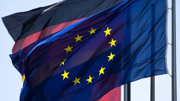 A European and two German flags wave near the Reichstag building in Berlin .Markus Schreiber/The Associated Press