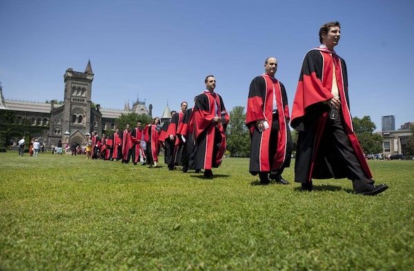 Graduating P.H.D. and Masters students head towards Convocation Hall at the University of Toronto on Friday, June 15, 2012.