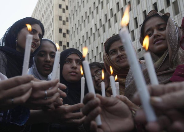 Women light candles while taking part in a rally to commemorate International Women's Day in Karachi on March 8, 2013.ATHAR HUSSAIN/Reuters