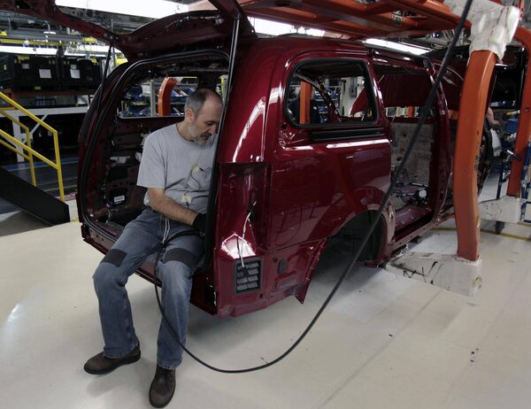 A Chrysler auto assembly worker is seen in this file photo. Statscan says factory sales rose 1.1 per cent in April.© Rebecca Cook / Reuters/Reuters