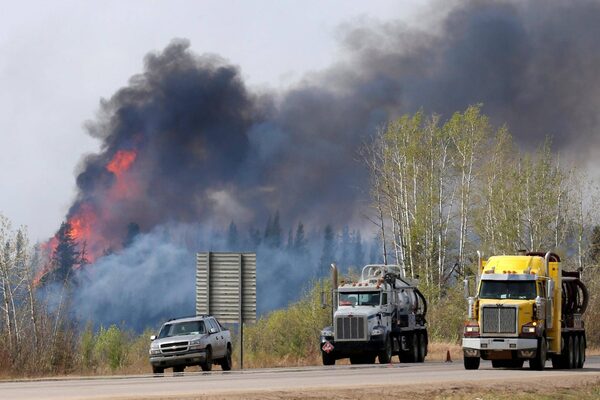 A wildfire burns near Highway 63 south of Fort McMurray, Alta., May 8, 2016.CHRIS WATTIE/Reuters