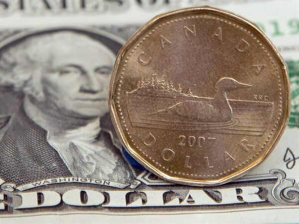 A Canadian dollar, or loonie, sits on top of its American counterpart in Toronto on Sept. 20, 2007.Adrian Wyld/The Canadian Press