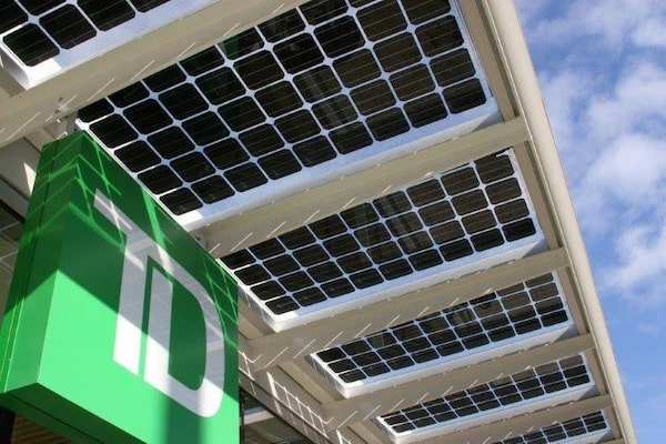 TD bank branch bank with solar panels in Mississauga.