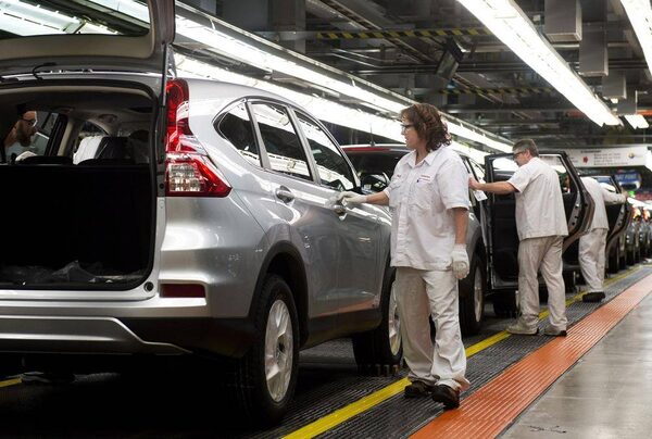 Workers inspect vehicles and work on the assembly line at Honda of Canada Manufacturing Plant 2 in Alliston, Ont., on March 30, 2015.Nathan Denette/The Canadian Press