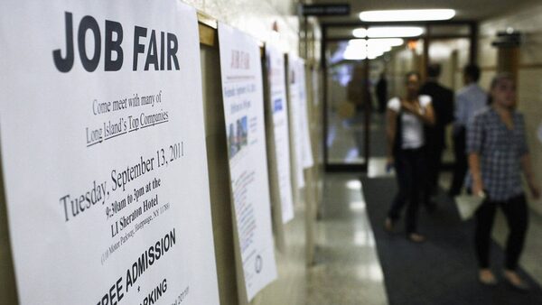 A job fair sign is viewed at a Job Fair at the Suffolk County One Stop Employment Center on September 8, 2011 in Hauppauge, New York.Spencer Platt/Getty Images