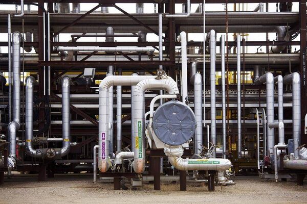 Pipes which are part of the processing plant at the McKay River Suncor oil sands in-situ operations near Fort McMurray, Alta., on Sept. 17, 2014.Todd Korol/Reuters
