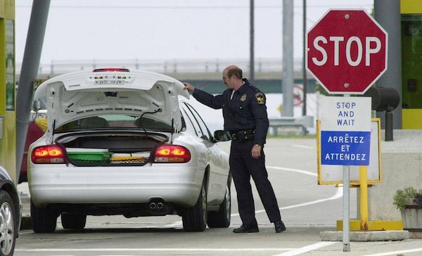 An officer peers into the trunk of a vehicle at the border crossing station in Highgate, Vt.TOBY TALBOT/The Associated Press