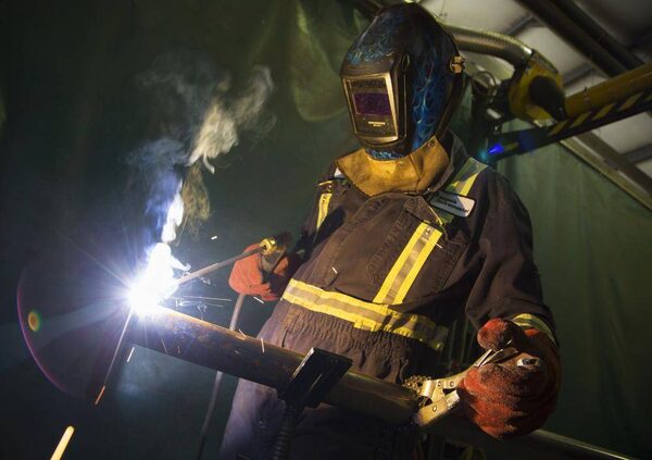 A welder works fabricating a piece of equipment at Sequoia Environmental Remediation, a leading environmental supply and service company in Calgary on June 3, 2014.TODD KOROL/Reuters