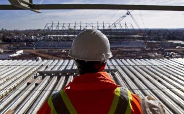 File photo of a construction worker overlooking the site of the Pan Am soccer stadium in Hamilton, Nov. 14, 2013.Asron Lynett/The Canadian Press