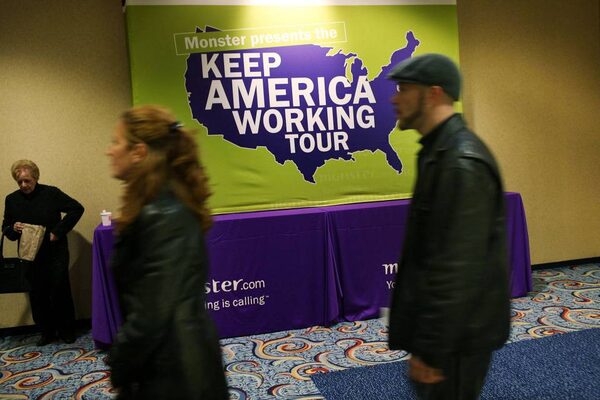 People wait in line at a job fair sponsored in November, 2009 in New York City.Spencer Platt/Getty Images