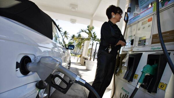 A resident looks at the price of gasoline as she fuels up her car at a gas station in South Beach in this file photo.CARLOS BARRIA/Reuters