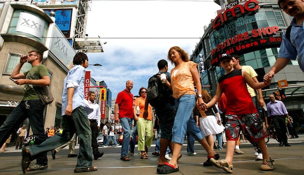 Toronto Councillor Denzil Minnan-Wong plans to get rid of the so-called scramble pedestrian crossing at Yonge/Dundas because it means cars have to wait an extra few seconds.Peter Power/The Globe and Mail