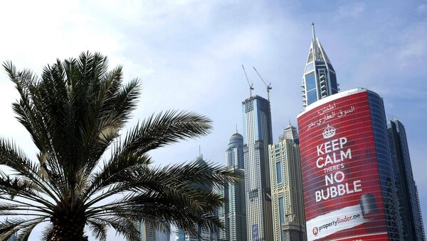 The city's residential market has gone from boom to correction in the past two years. Toward the end of 2013, a Dubai real-estate listing company hung a massive advertisement down the length of a prominent office building. Riffing off the British "Keep Calm and Carry On" meme, the ad proclaimed "Keep Calm, There's No Bubble."