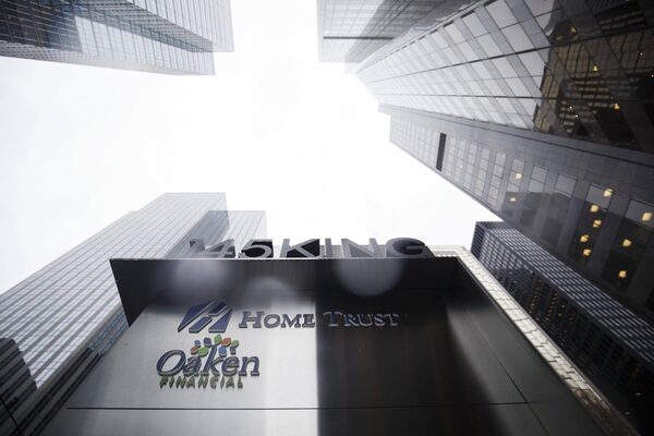 Home Trust Co., a subsidiary of Home Capital Group Inc., stands outside the company's headquarters in Toronto.