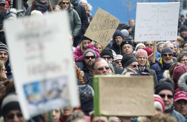 Government House Leader Jean-Marc Fournier turned up at the Sunday protest, joining a chorus of politicians from his own government, as well as all the opposition parties in the Quebec legislature, in publicly criticizing the move.
