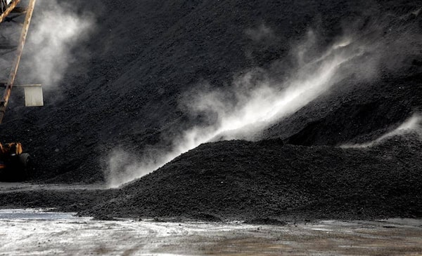 Petcoke is watered down where it is stored along the Calumet River on Chicago's southeast side. The byproduct of oil refining has been piling up along Midwest shipping channels and sparked waves of environmental concerns.CHARLES REX ARBOGAST/The Associated Press