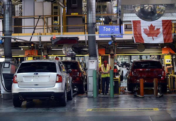 Vehicles move along the production line at Ford’s Oakville Assembly Complex in Oakville, Ontario.Aaron Harris/Bloomberg