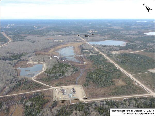 The regulator is investigating whether the bitumen escaped through cracks in the rock above the deposit and was driven to the surface by high-pressure steam pumped underground to soften it before being extracted. The company has been ordered to reduce the pressure of the steam it uses.