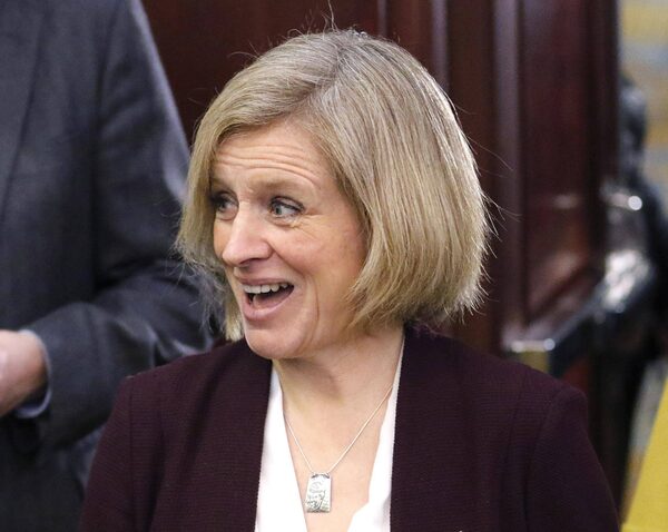 Alberta Premier Rachel Notley appears surprised by a packed room as she arrives to announce Alberta's New Royalty Framework in Calgary, Alta., on Friday, Jan. 29, 2016.Larry MacDougal/The Canadian Press