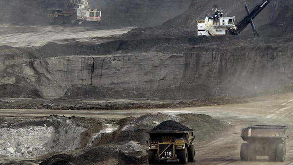 Mining trucks carry loads of oil-laden sand at the Albian Sands oils sands project in Fort McMurray, Alta.JEFF McINTOSH/The Associated Press