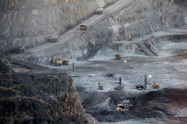 Mining trucks and machinery operate in the Fimiston Open Pit, known as the Super Pit, in Kalgoorlie, Australia, in 2013. The Super Pit is managed by Kalgoorlie Consolidated Gold Mines Ltd., jointly owned by Barrick Gold Corp., the world's largest producer of the metal.Carla Gottgens/Bloomberg