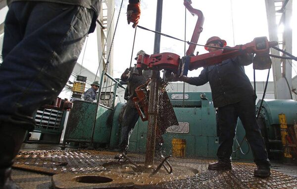 An oil drilling rig operates outside Watford, N.D.JIM URQUHART/Reuters