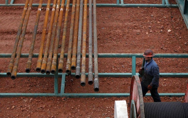 Brian Waldner prepares pipe on a rig outside Watford.JIM URQUHART/Reuters