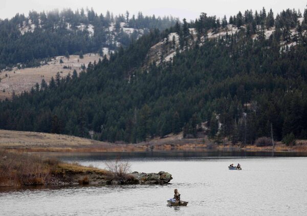 Boaters fish for trout on Jacko Lake, near the site of a proposed expansion of Kinder Morgan's Trans Mountain pipeline.Chris Helgren/Reuters