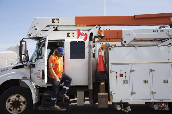 Hydro One workers gather at the Husky Travel Centre in Niagara-on-the-Lake, Ont. Monday, September 11, 2017 before starting their journey to Florida, where they will help with Hurricane Irma relief efforts.Tara Walton/The Canadian Press