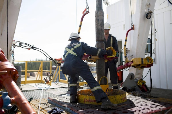 Employees torque a pipe at a wedge well at Christina Lake, an oil production facility half owned by Cenovus Energy Inc. and ConocoPhillips, in Conklin, Alta. in August, 2013.Brent Lewin